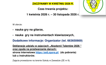 Zobacz wszystkieAKADEMIA TALENTÓW ZAPRASZA NA ZAJĘCIA. SZCZEGÓŁY…