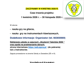 AKADEMIA TALENTÓW ZAPRASZA NA ZAJĘCIA. SZCZEGÓŁY… Czytaj więcej