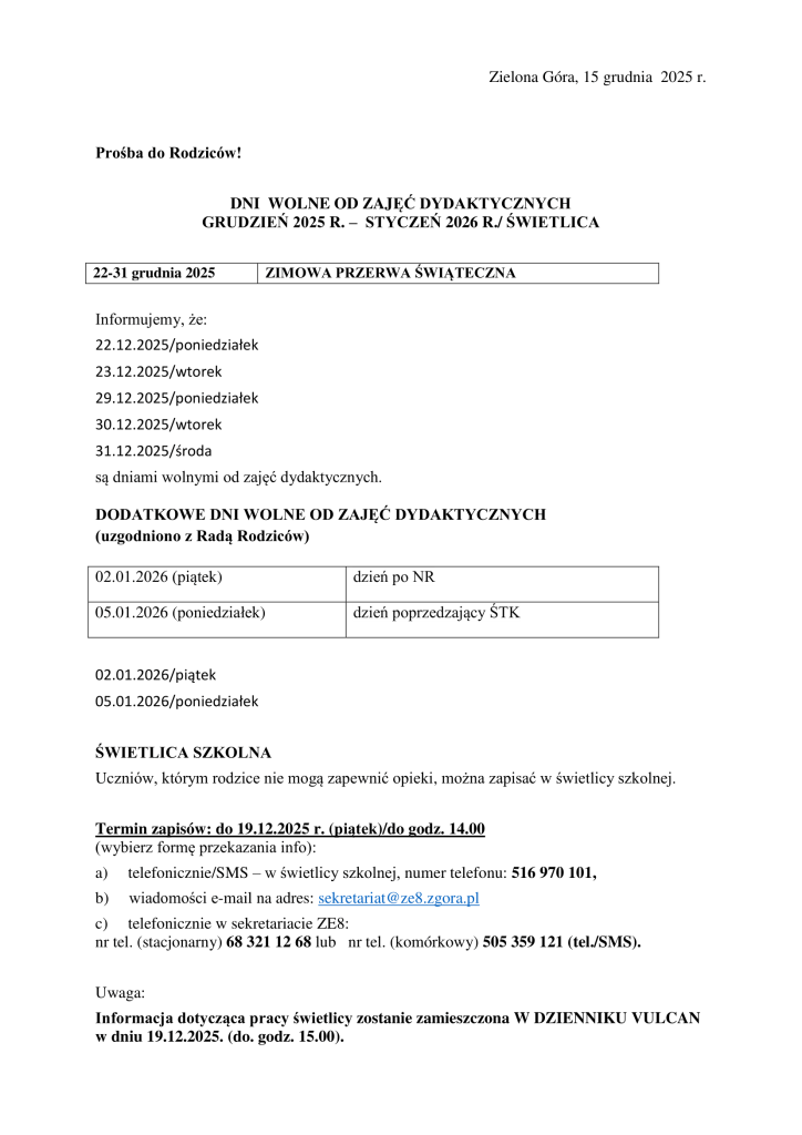 Aktualności / Imprezy szkolne / Z życia świetlicy / Z życia szkołyDNI WOLNE OD ZAJĘĆ DYDAKTYCZNYCH – GRUDZIEŃ 2025 R. – STYCZEŃ 2026 R./ ŚWIETLICA 2025-12-152025-12-15 śwetlica – ogłoszenie, dni wolne grudzień 2025 _styczeń 2026