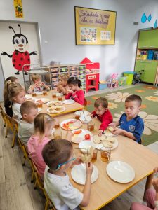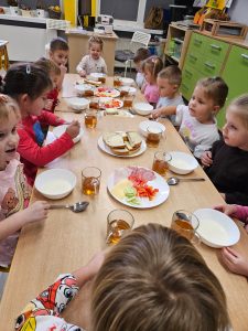 Akcja „Śniadanie daje moc” ma na celu kształtowanie prawidłowych nawyków żywieniowych wśród dzieci. W naszym przedszkolu każdego dnia zachęcamy dzieci do spożywania zdrowych produktów, a wspomniana akcja skłania nas do organizowania wspólnych śniadań, co sprzyja integracji dzieci oraz wzbogaca ich wiedzę na temat wartości odżywczych spożywanych produktów.