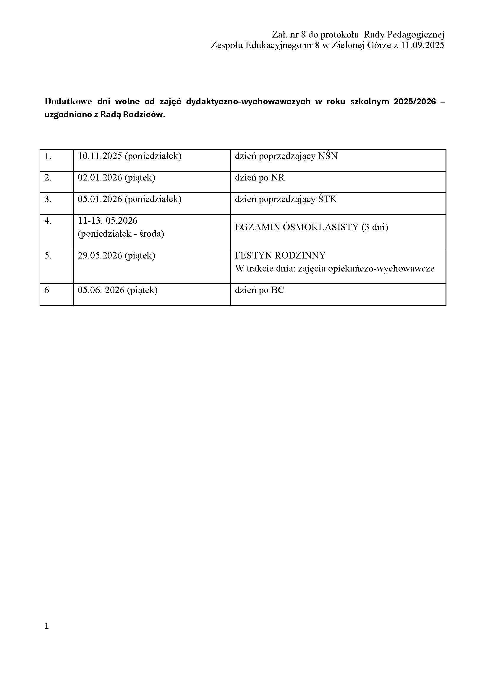 Zał. nr 8_Kalendarz roku szkolnego 2025-2026